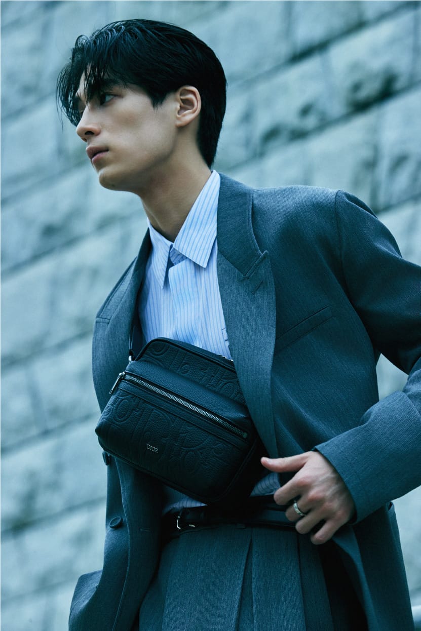 幅23cm×高さ17cm×奥行き7.5cmという実用的で、ちょうどいいサイズのメッセンジャーバッグ。通常サイズのタブレットならスッポリ入るし、デイリーユースには最適だ。ブラックのカーフスキンには、よく見ると繊細なエンボス加工が施されているが、これは「ディオール グラビティ」と呼ばれる新素材。重力の作用によって、革に繊細な模様を施す、特殊なエンボス加工技術なのだとか。また同系色のグレインドカーフスキンのディテールとフロントの“DIOR”シグネチャーがアクセントになっている。ストラップの長さを調整すればショルダーバッグや、身体と密着させるクロスボディバッグとしても使うことができる。