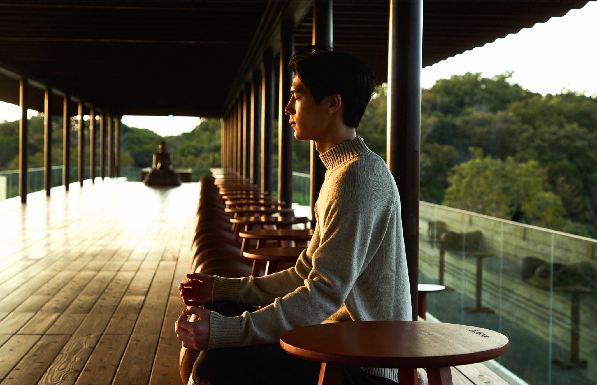 テラスの下には全18部屋の宿坊が用意されている。一人部屋と二人部屋の2タイプがあり、それぞれの部屋には「一期一会」など禅に通じる言葉が割り振られている。書(ZEN書)をして過ごせるよう、デスクが備わっているのだ。建物のおよそ80%が木材でできている。そのため、館内はもちろん、部屋にいるだけで、木の香りに優しく包まれ、リラックスできる。またガラス張りの窓からは光が存分に差し込み、日の出とともに身体が目覚めるはずだ。スマホの電源をオフにして、デジタルデトックス。外部からの情報をシャットアウトしながら、今年の自分を振り返り、翌年の飛躍を誓うアイディアを考える。そんな過ごし方をする一夜があってもいいだろう。